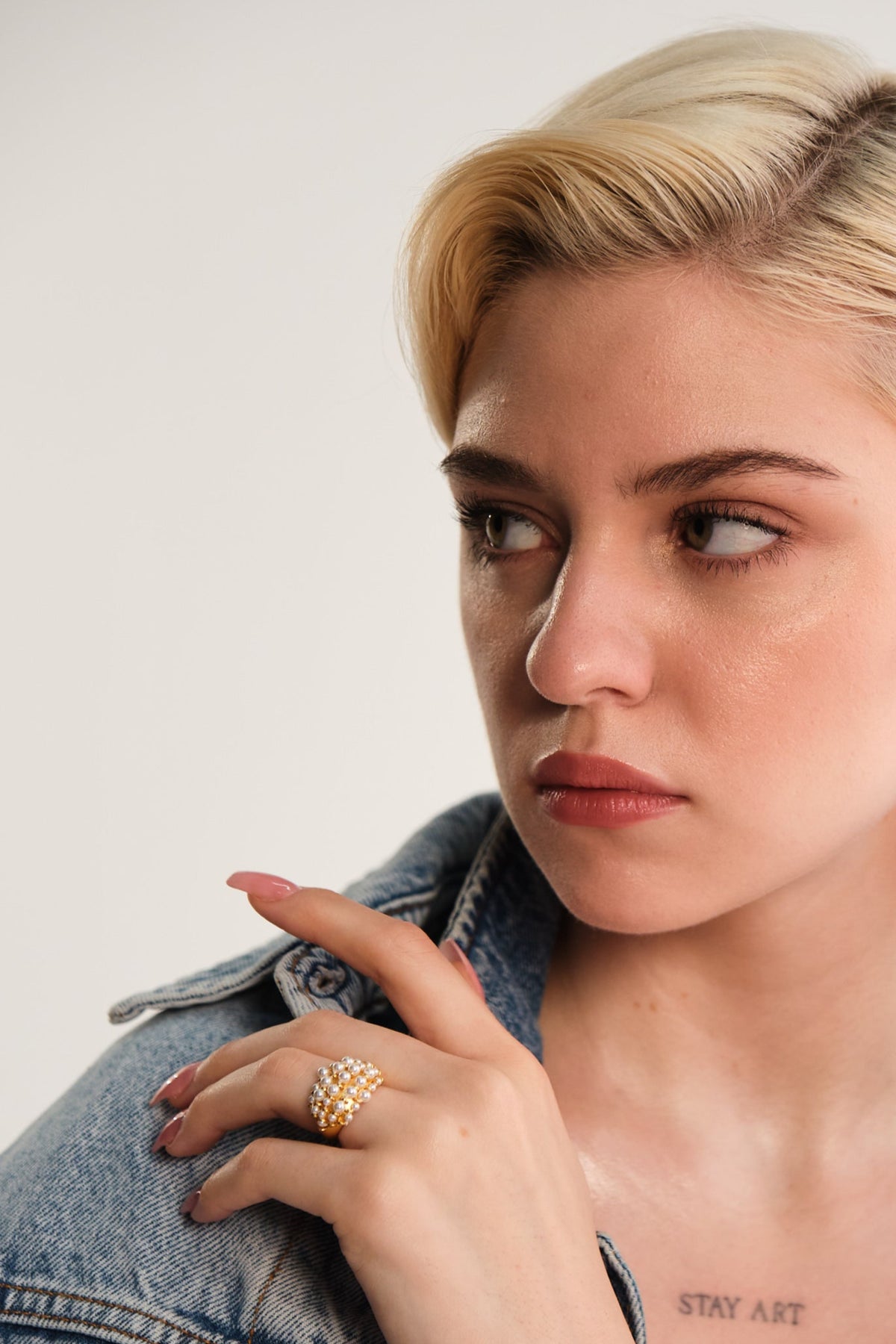Care Instructions: It is recommended to keep away from moisture, perfumes, chemicals, and excessive heat. To be stored in the protective bag provided with purchase.