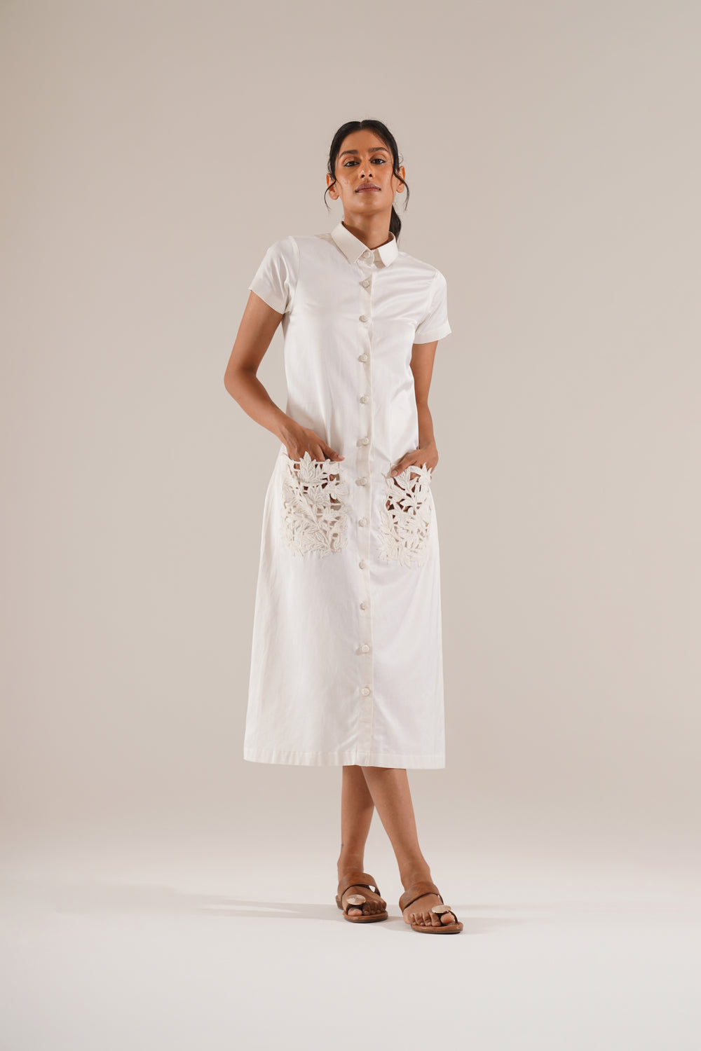 Leaf Pockets Shirt Dress