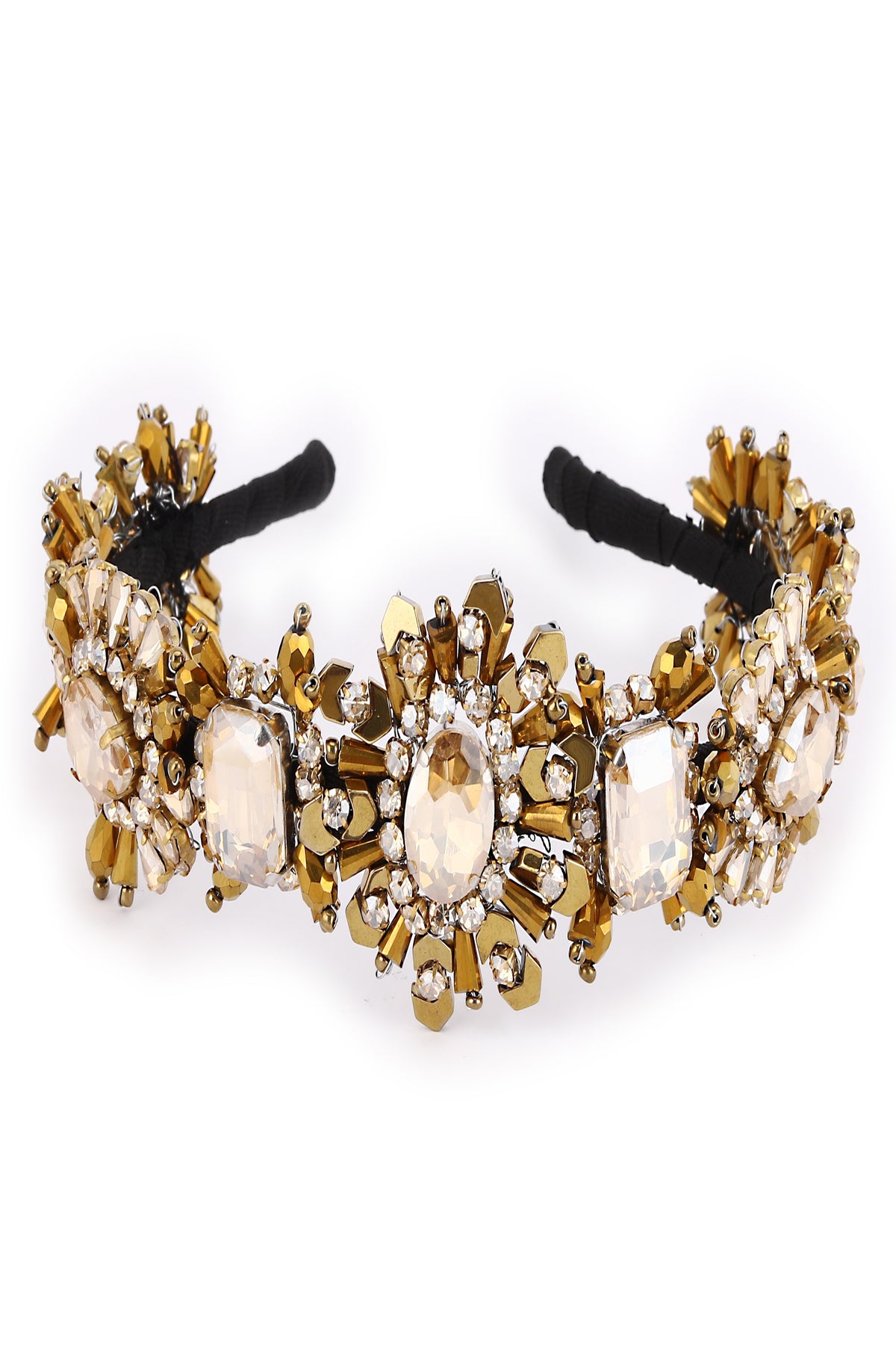 Introducing the Golden Insect-Inspired Crystal Hairband, a striking accessory designed for those who love to make a statement. This luxurious hairband features a rich, golden beaded texture that mimics the intricate beauty of an insect’s form, adding a touch of the unexpected. Each bead is meticulously hand-placed, while shimmering crystals embellish the design, catching the light with every movement. Perfect for weddings and upscale parties, this headpiece combines elegance and avant-garde style, making it an exquisite choice for fashion-forward brides or guests who wish to elevate their look.