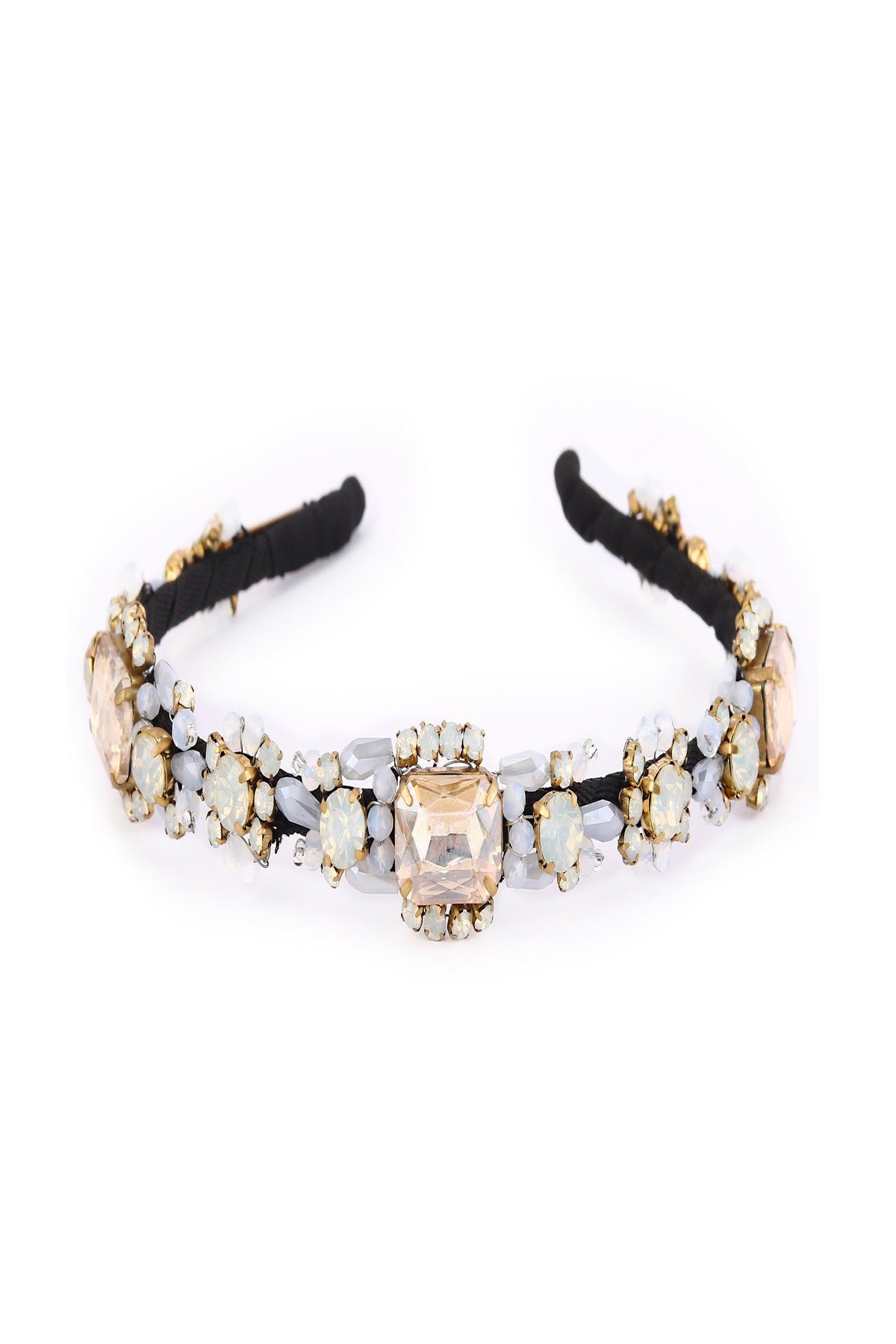 Add timeless elegance to your look with this stunning crystal headband featuring a champagne-colored rectangular centerpiece surrounded by blush pink and white crystals and delicate pearl-like accents. The ornate floral design is crafted with gold-toned metal detailing, bringing a soft vintage charm and sparkle to any hairstyle. Perfect for weddings, parties, or evening occasions, this headband shines beautifully under soft light and offers a luxurious statement for any outfit.