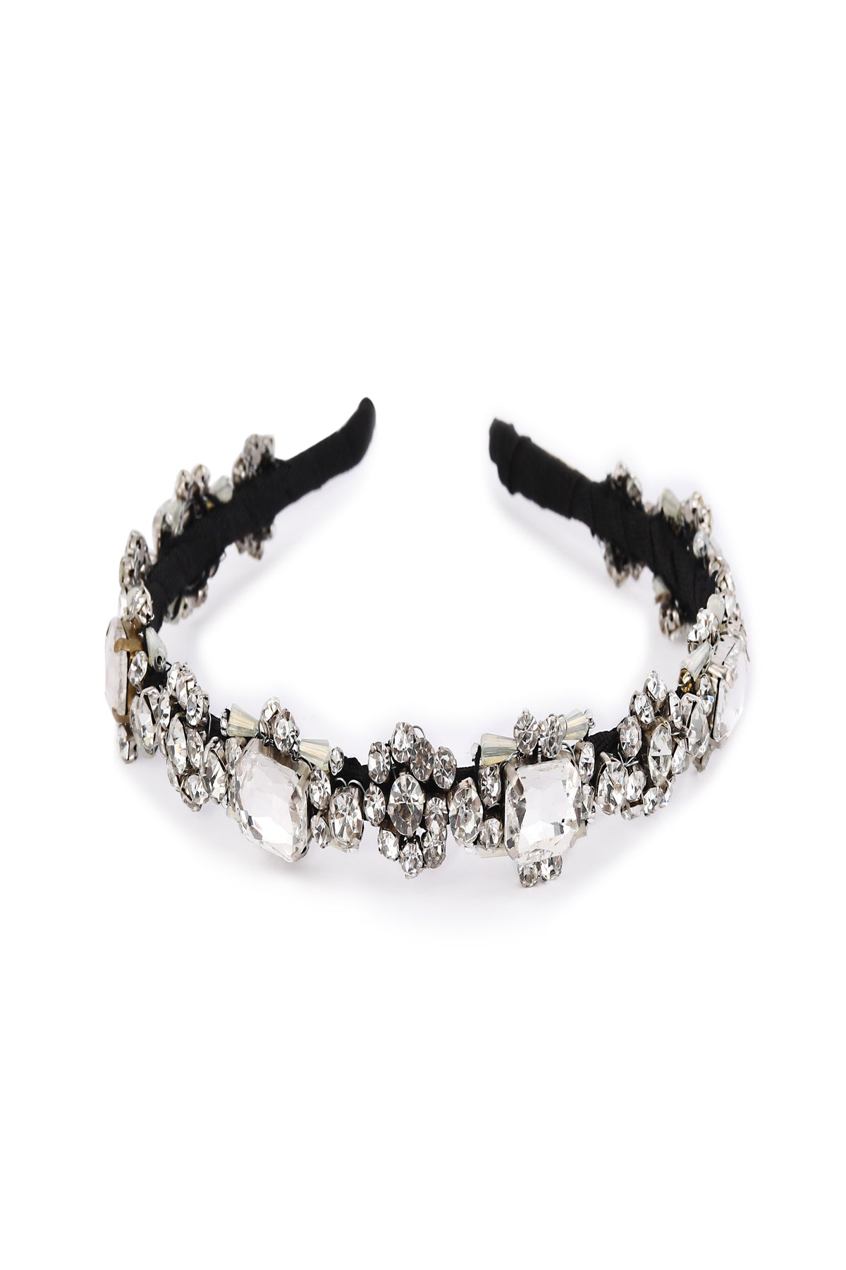 Add timeless elegance to your accessory collection with the Silver Petal Headband, a stunning blend of sparkle and sophistication. This ornate crystal headband features a striking oval-cut clear crystal at its center, beautifully framed by smaller round crystals in a delicate floral arrangement. Set in intricate silver-toned metalwork, the design offers a refined, radiant look that catches the light from every angle. flexible fit, making it ideal for weddings, parties, or glamorous everyday wear. This headband showcases its luxurious shine and craftsmanship in sharp detail—a must-have statement piece for any jewelry lover.