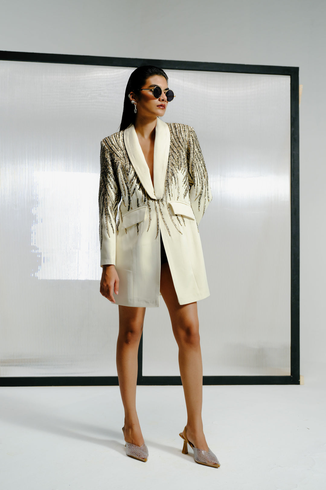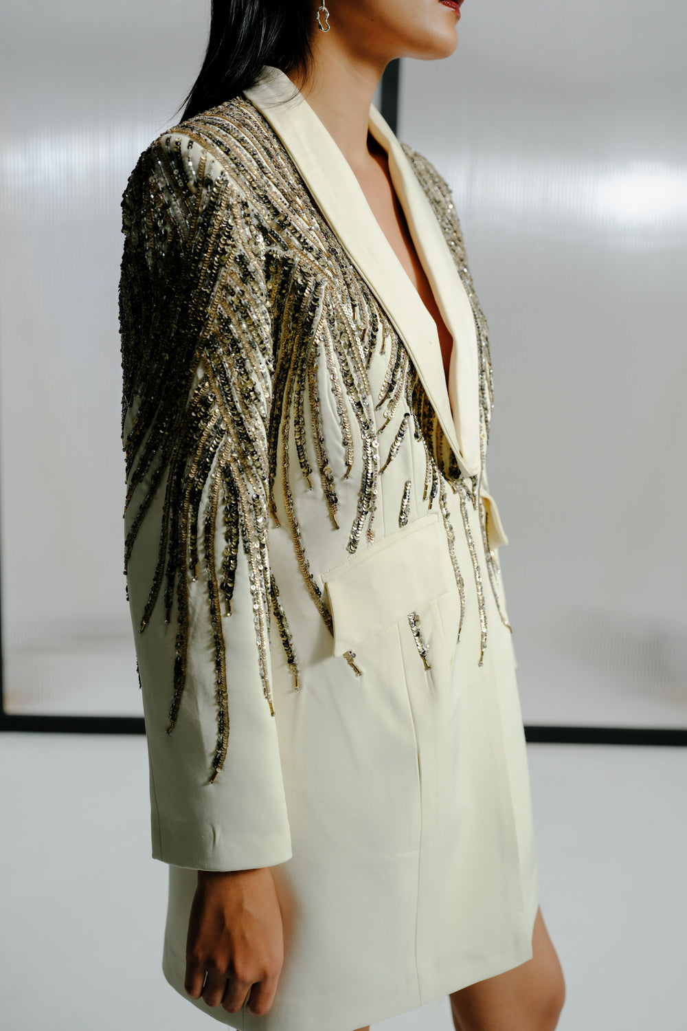 Ivory Blazer Dress with Crystal-Sequin Detailing