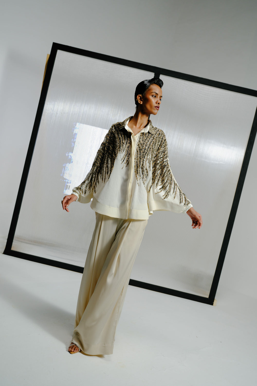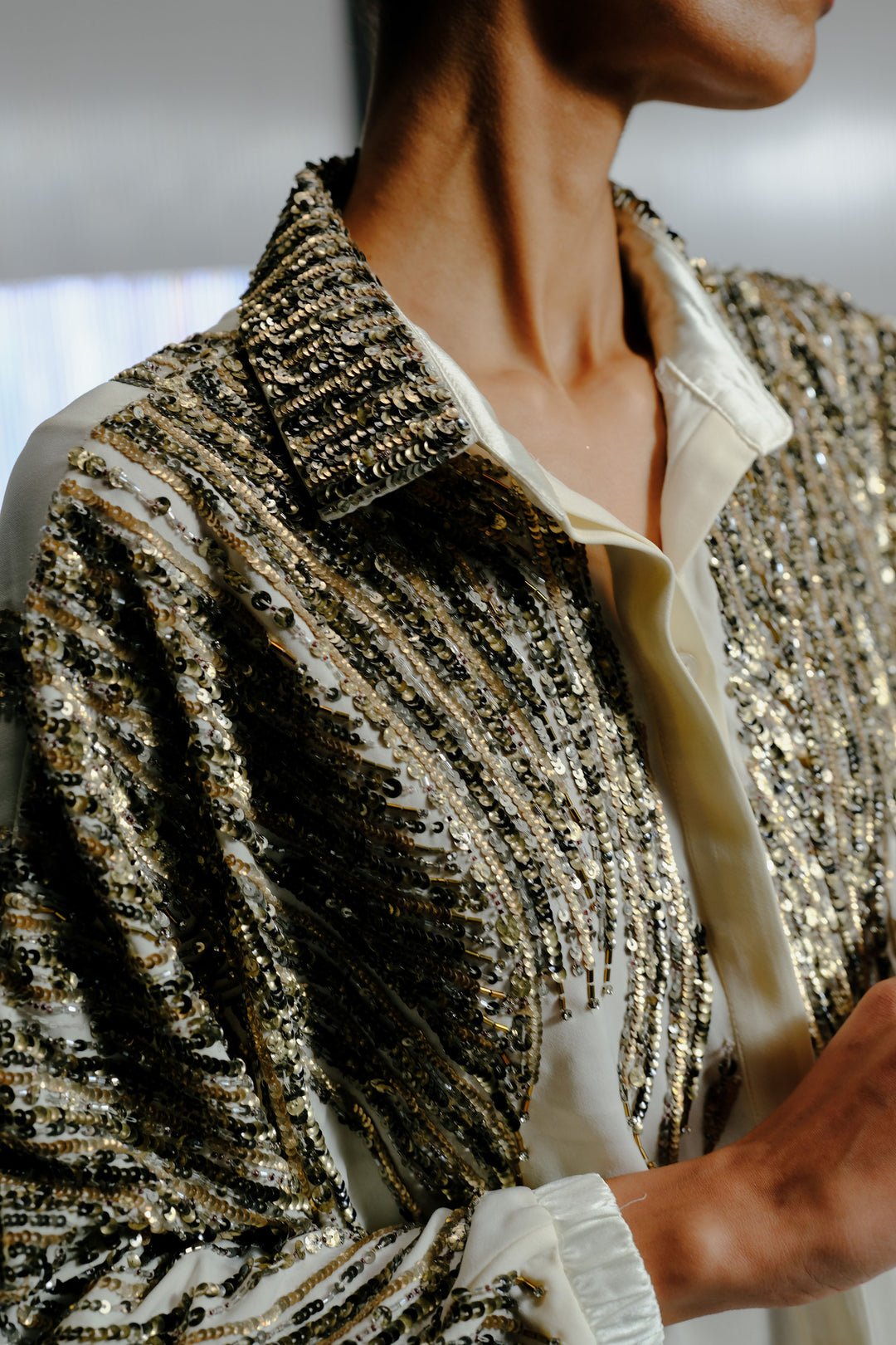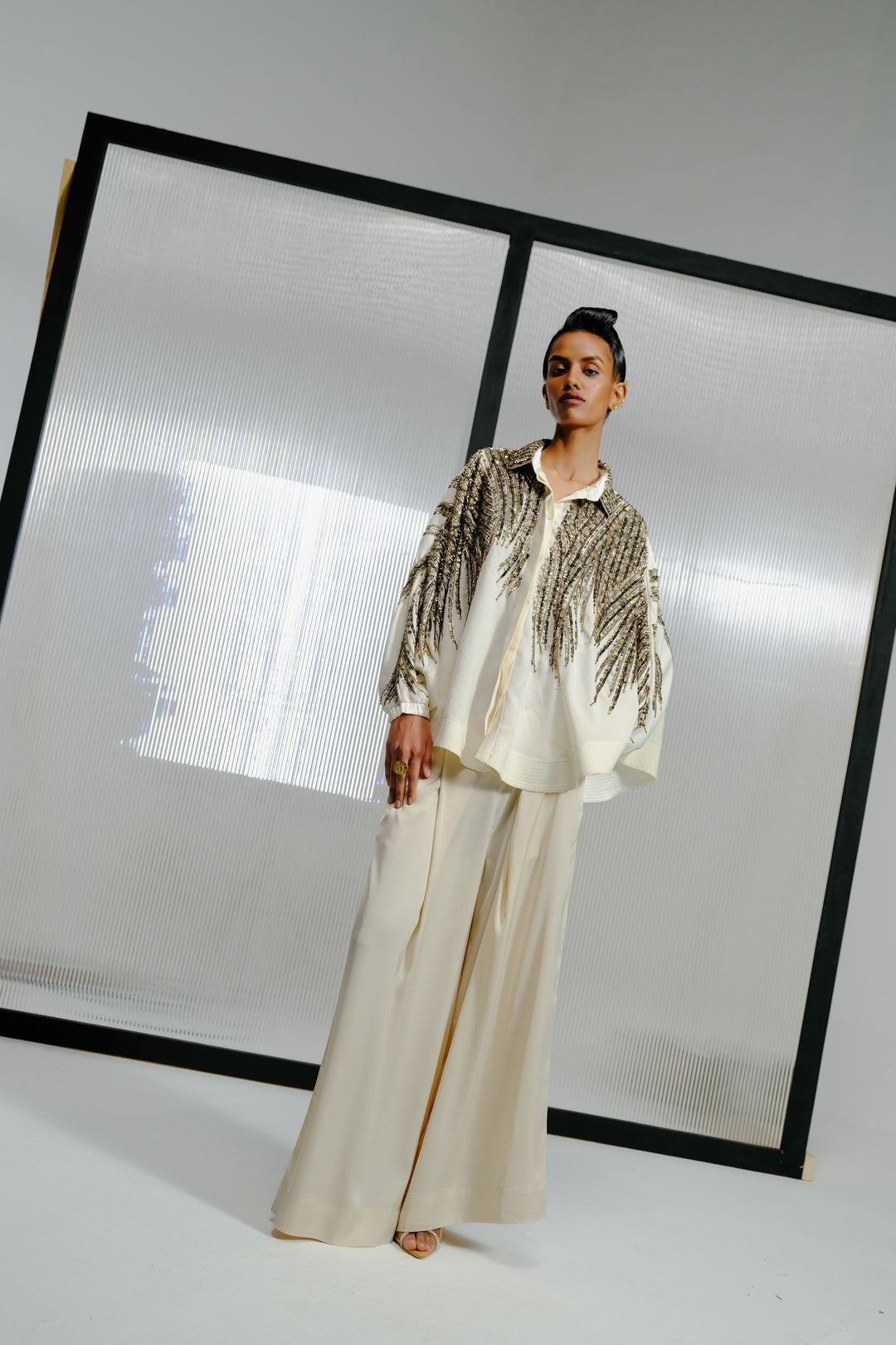 Ivory Shirt with Gold Crystal-Sequin Details