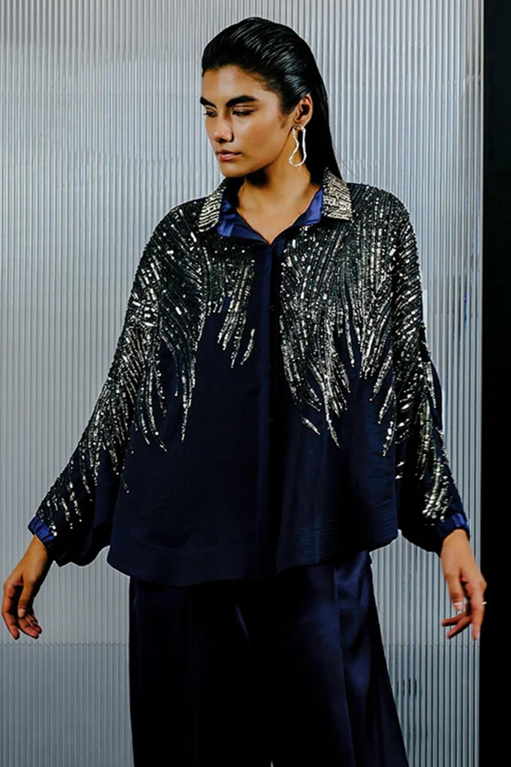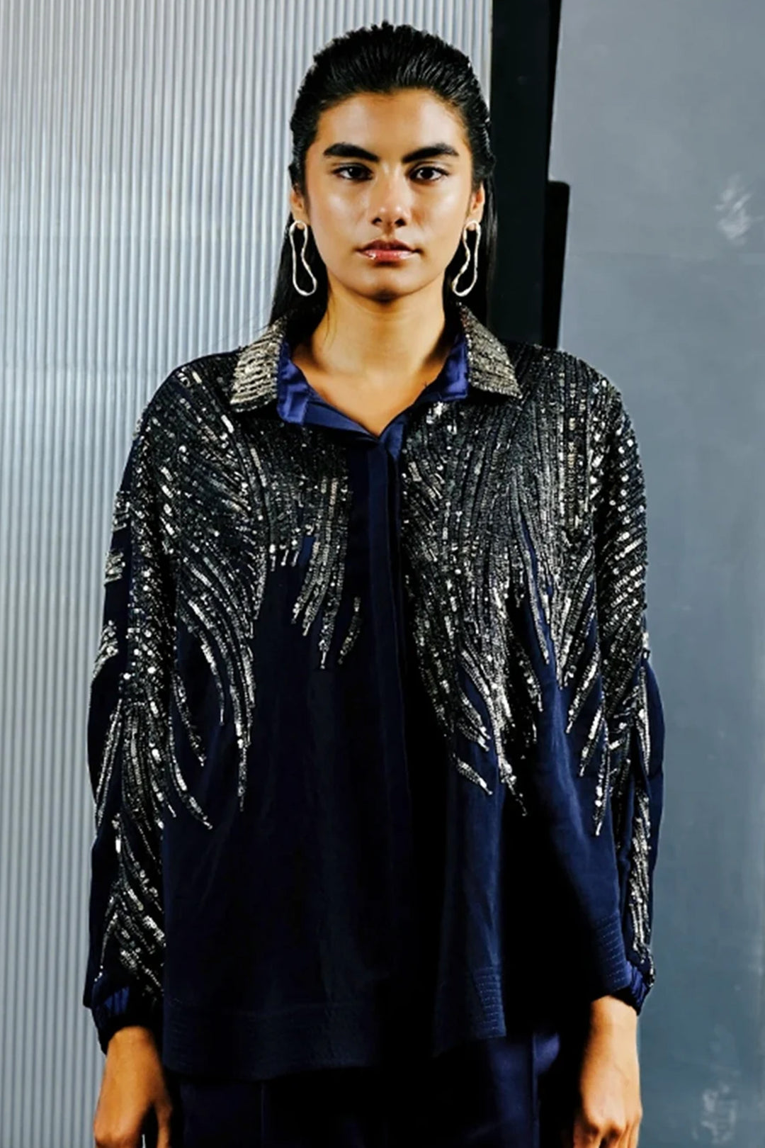 Blue & Silver Shirt with Multitoned Embellishments