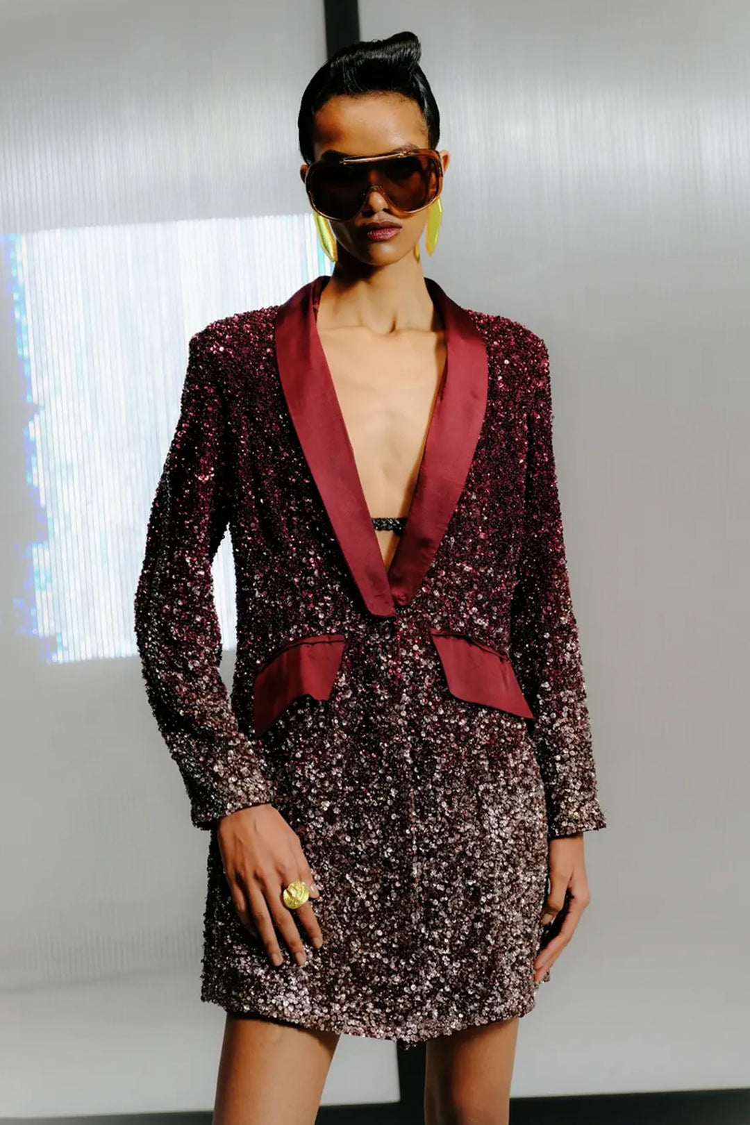 Plum-Rose Gold Mini Dress in Crystal-Sequin Detail