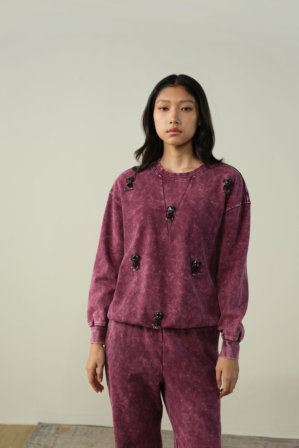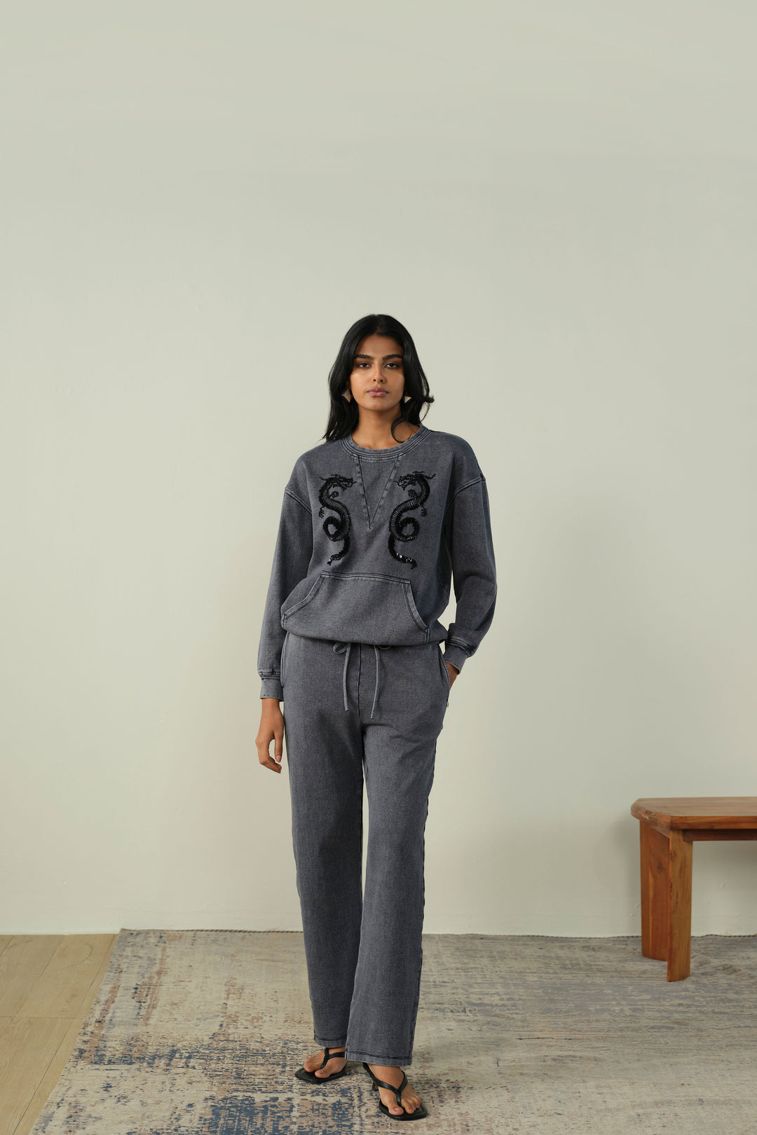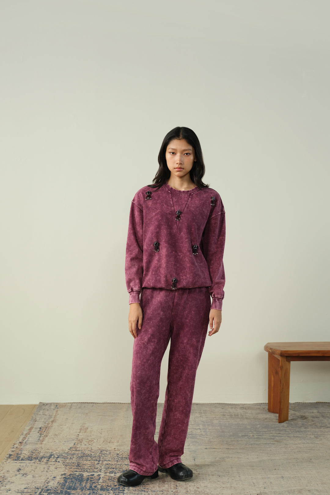 STAMP ELASTICATED TOP WITH FLARED PANTS