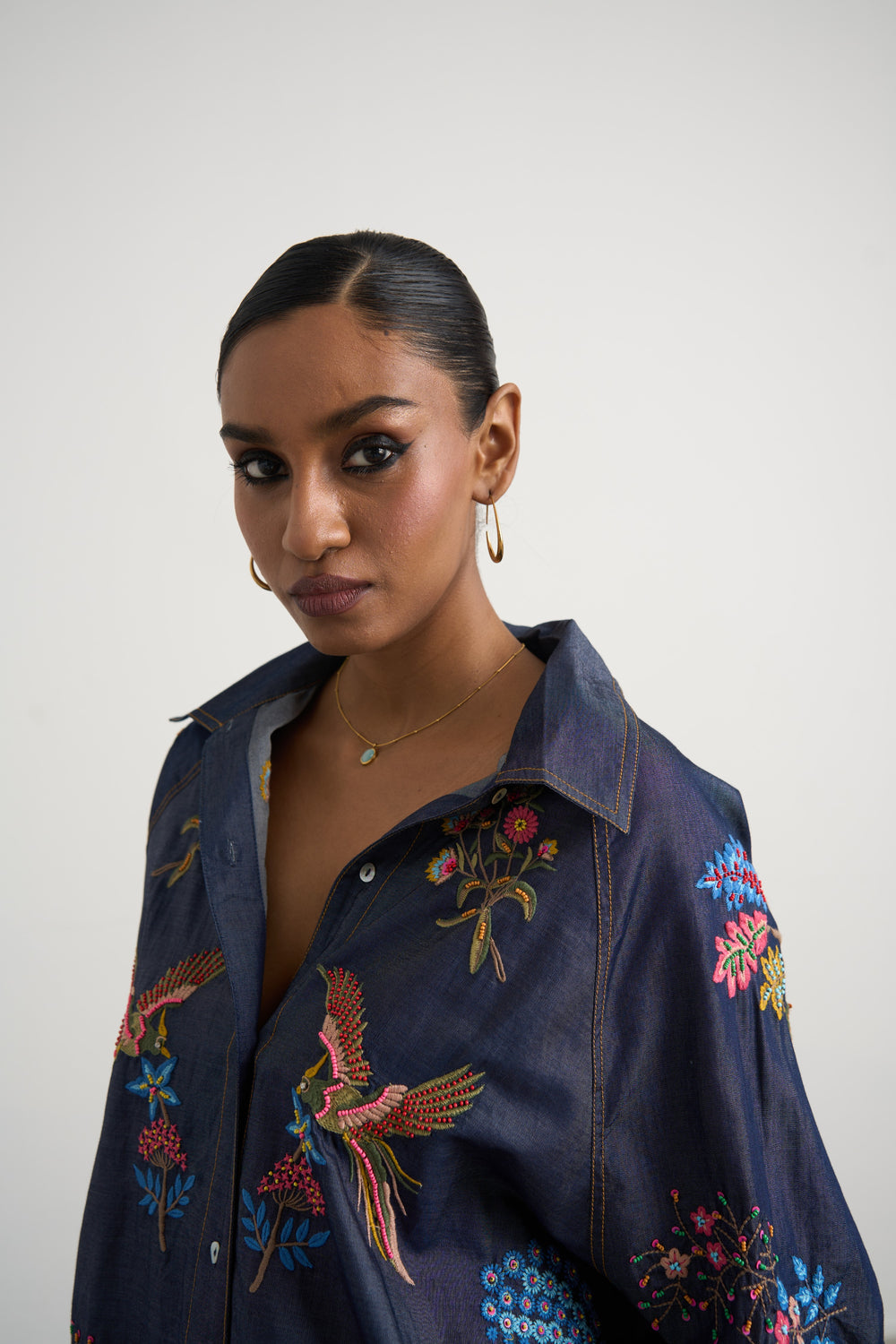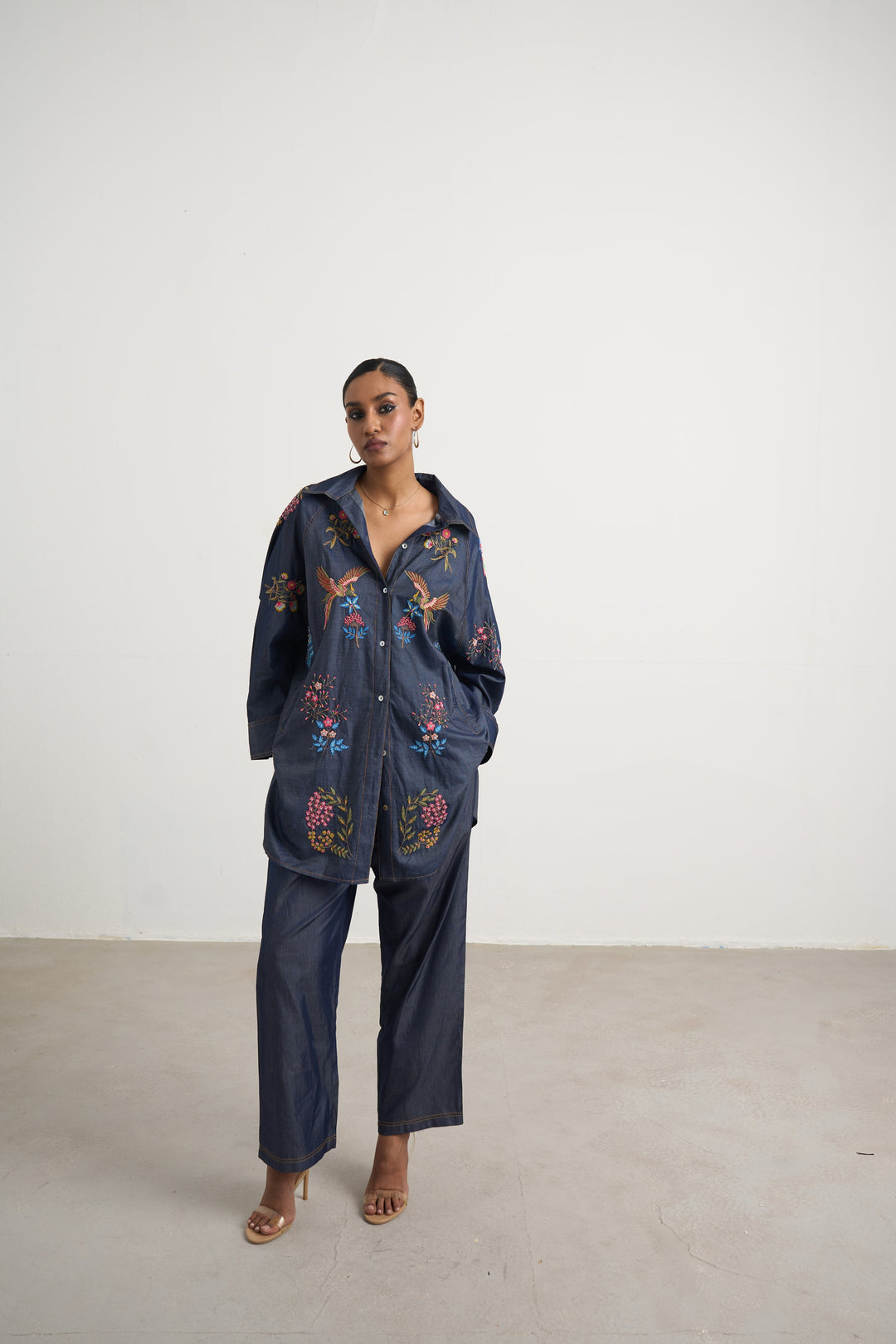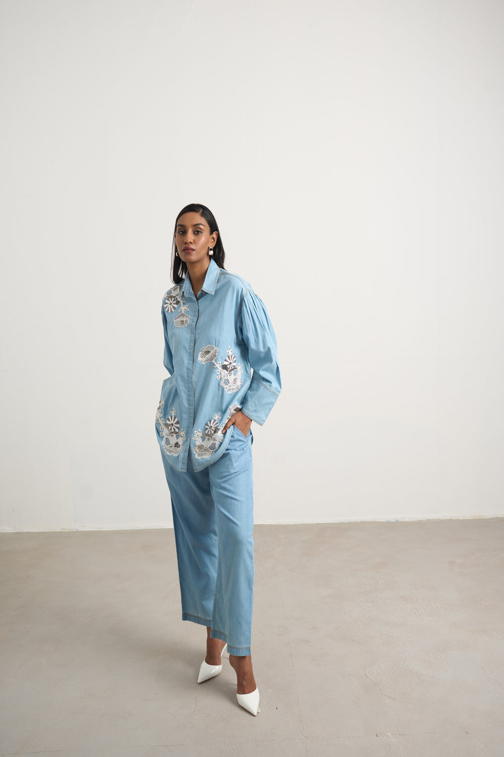 BLUE BLOSSOM RUCHING SHIRT & SHORTS
