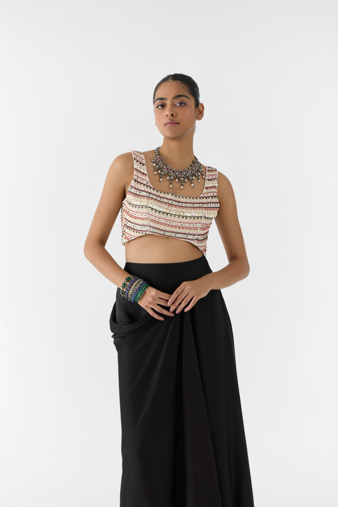 ONYX EMBROIDERED KIMONO AND KNOT SKIRT