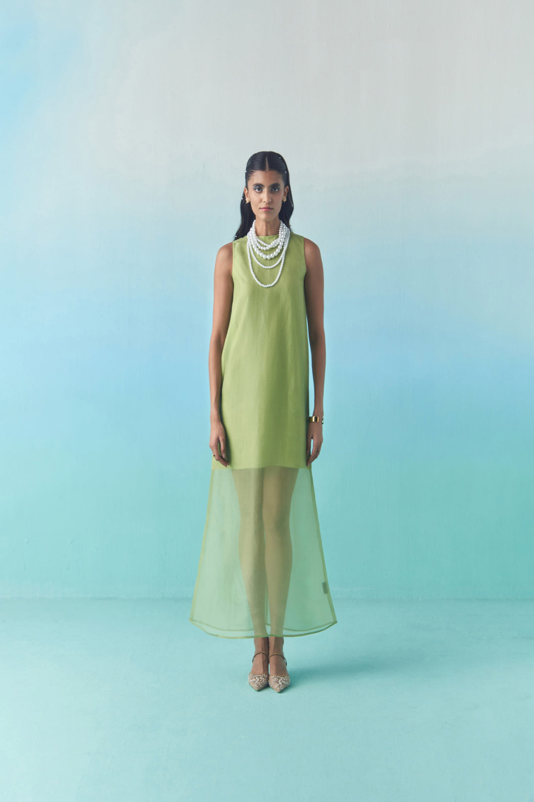 ORGANZA ACCORDION SKIRT - GREEN