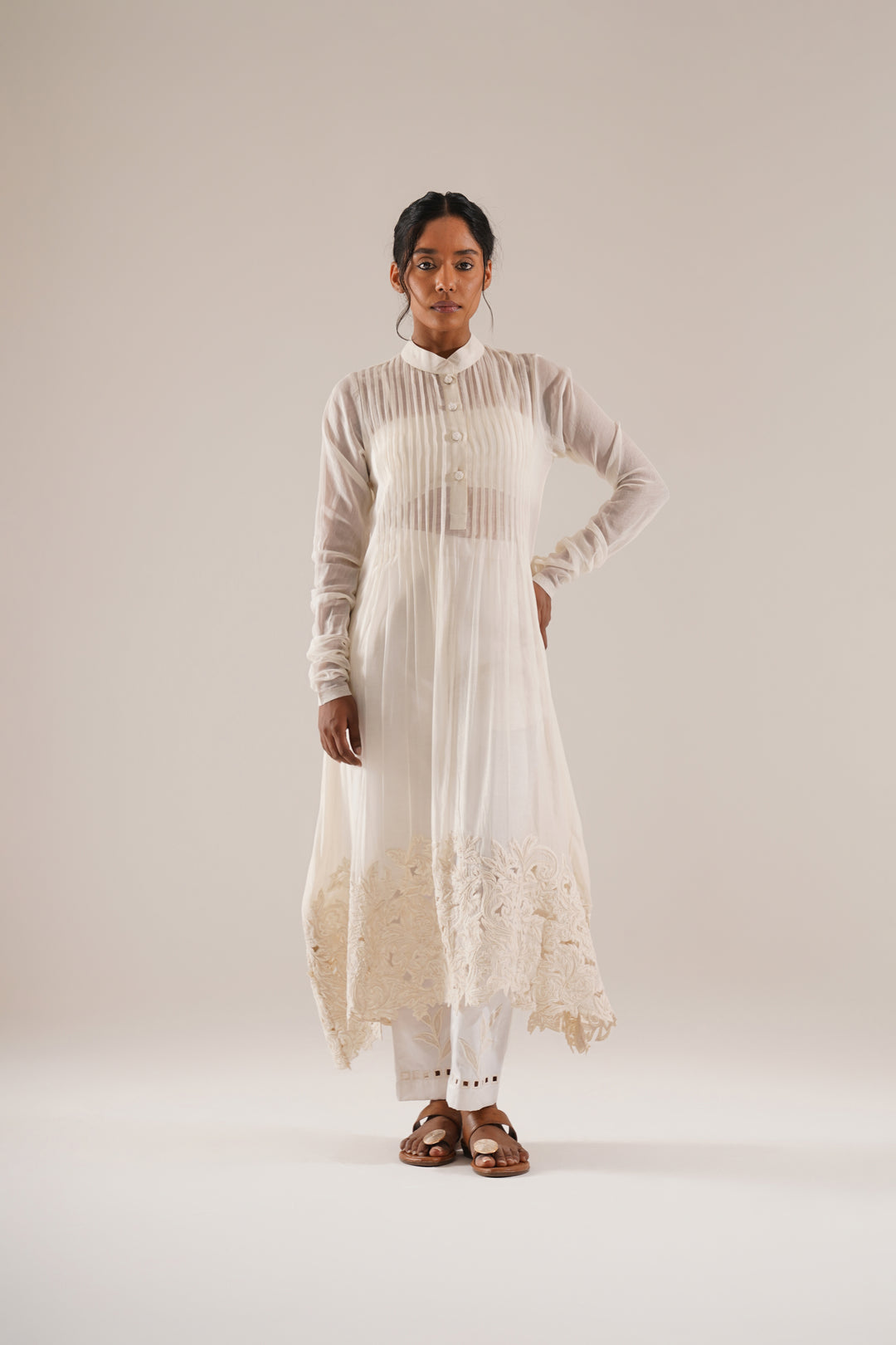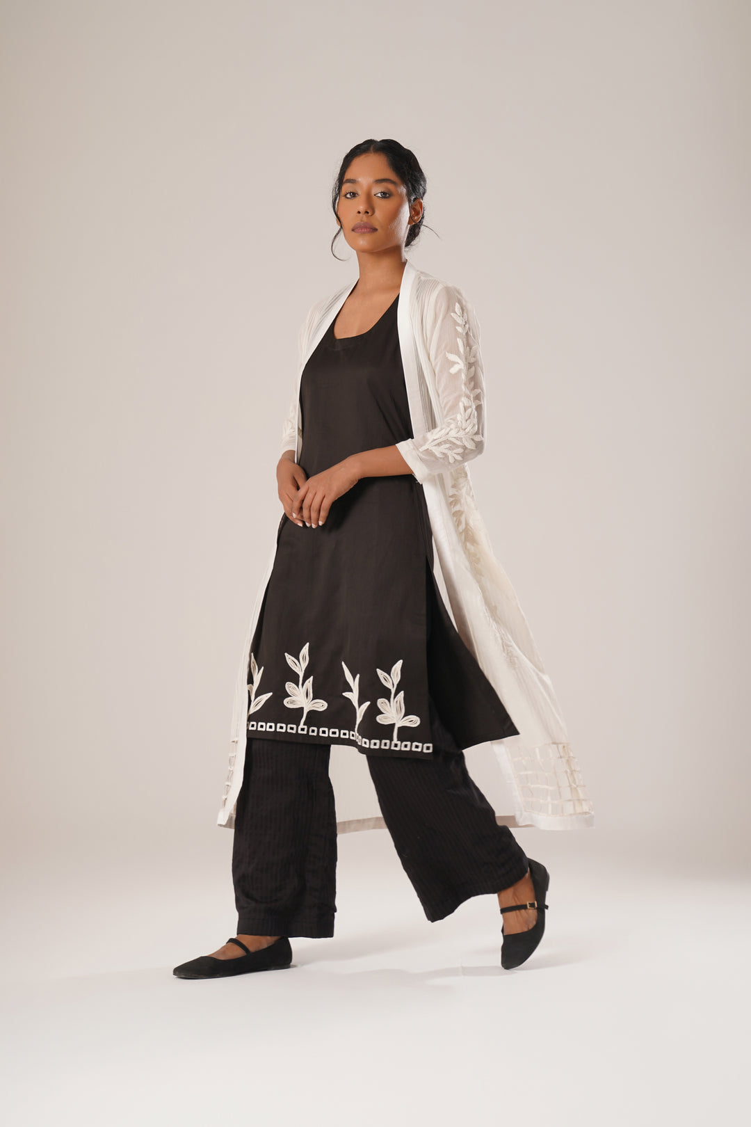BEIGE CHECK FLOWER V-NECK KURTA SET