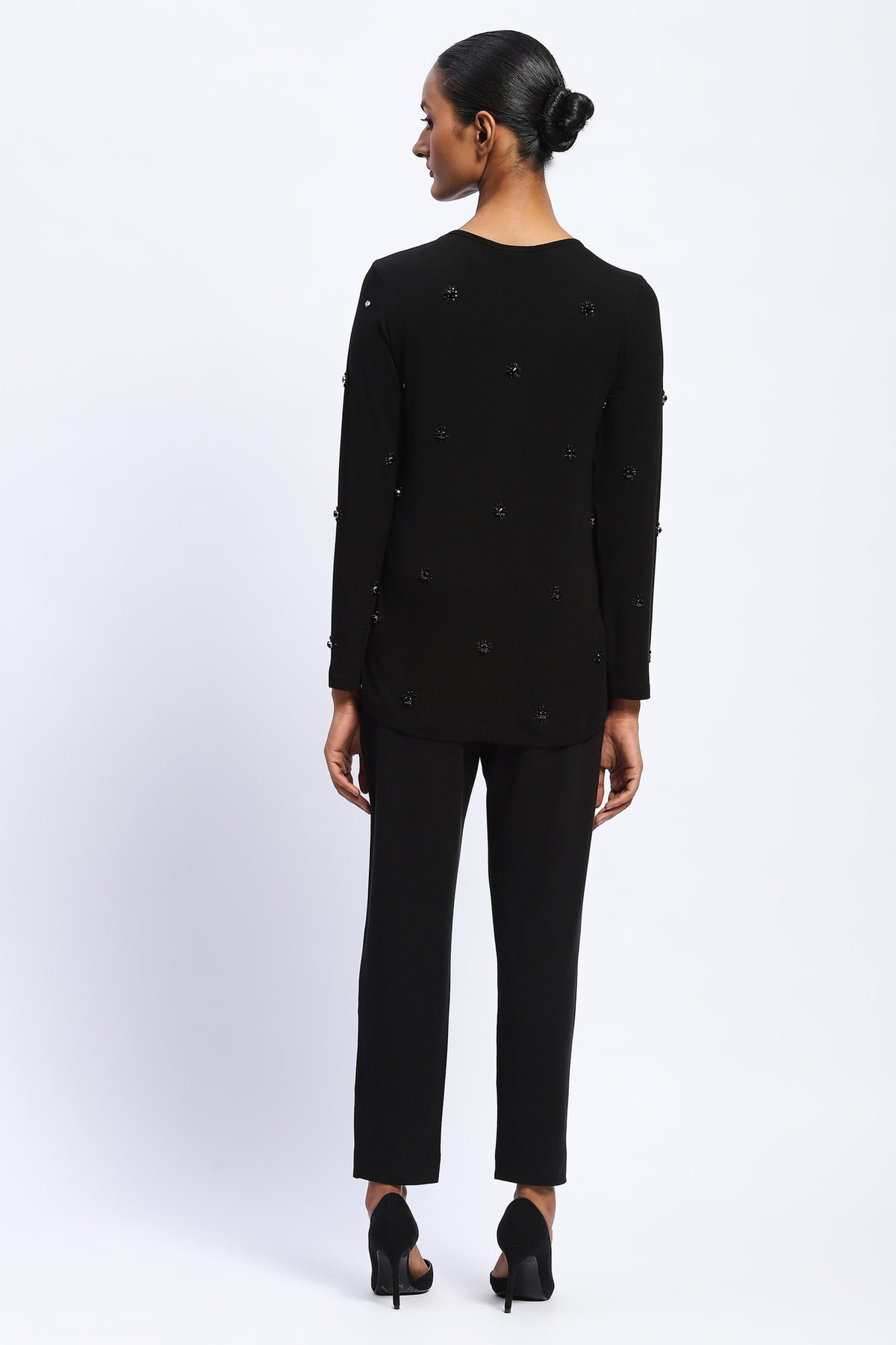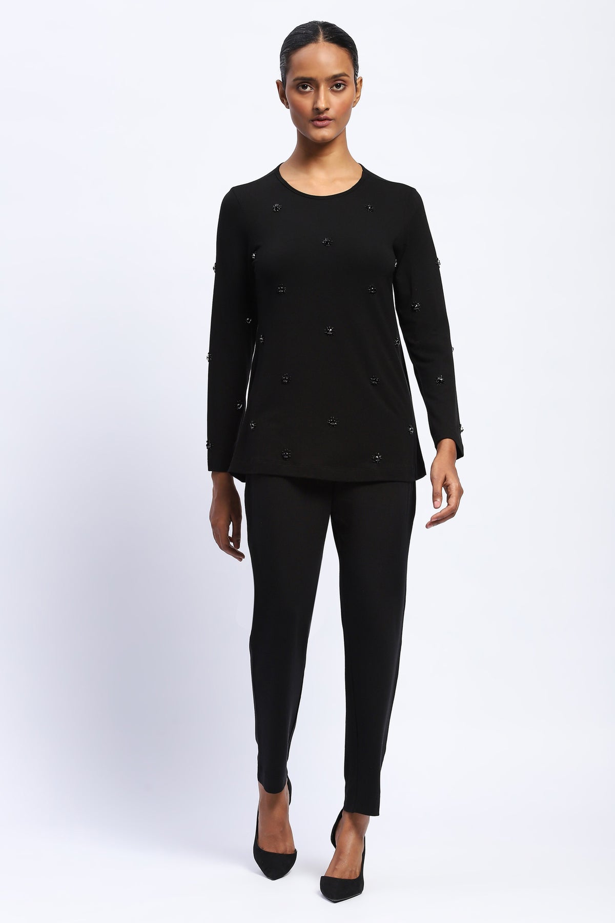 This piece has been made using 100% viscose lycra knit with an all over stone embellishment.