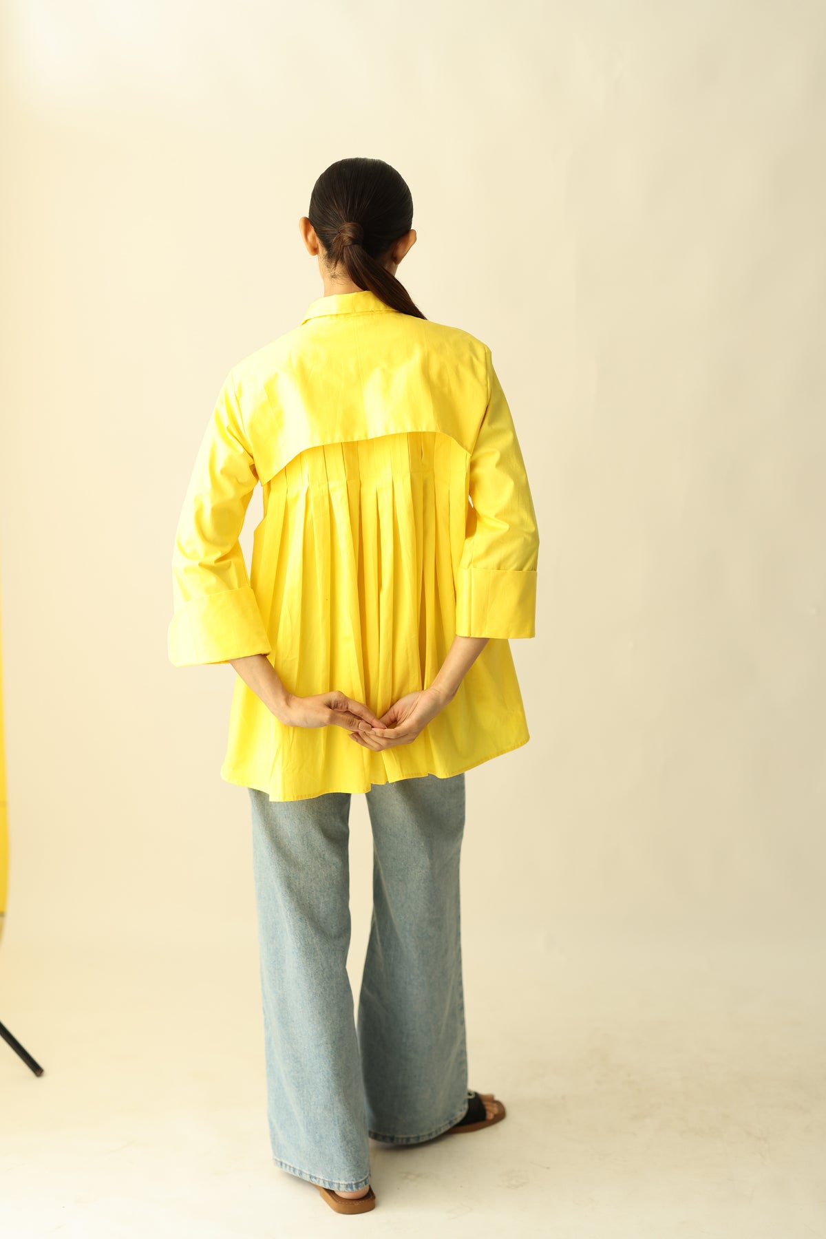 Back pleated shirt with orchid embroidery