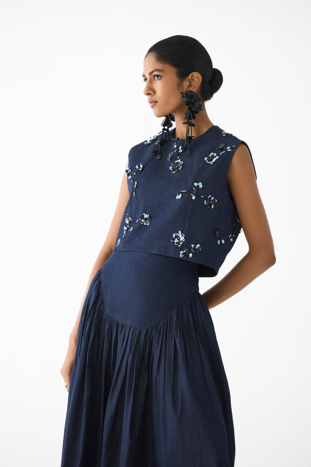 Bloom Petal Jacket, Bloom Sequins Skirt with Sheer Cascade Top