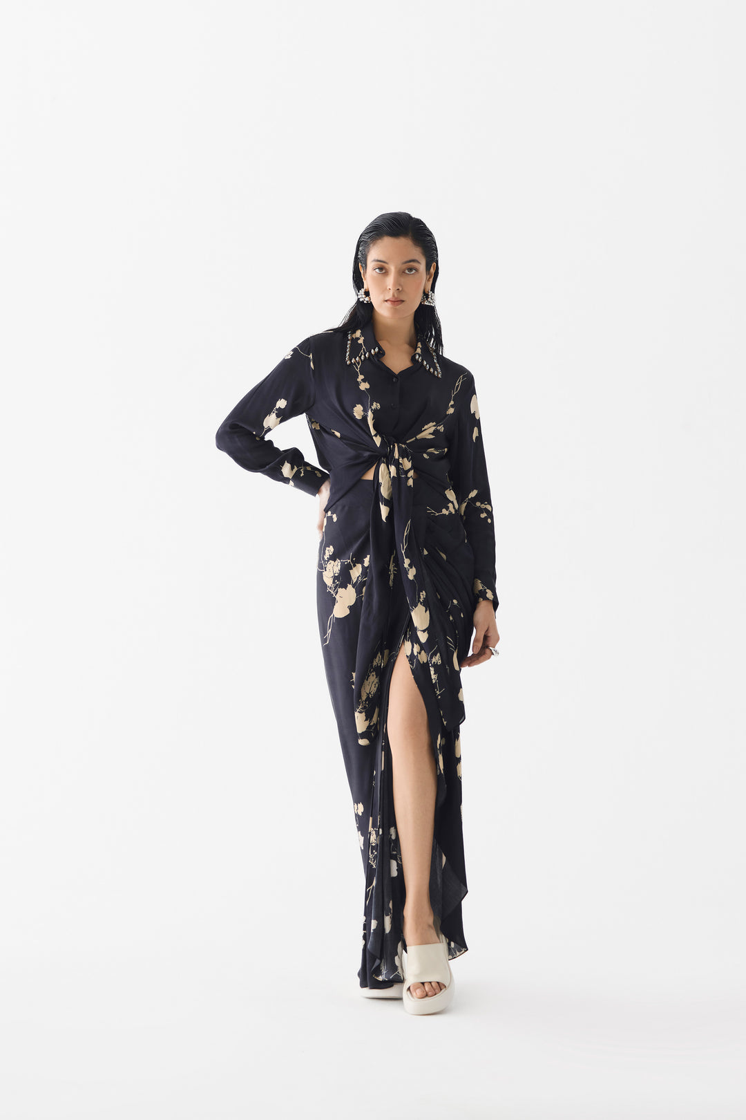 White Shirt With Jungle Wrap Skirt