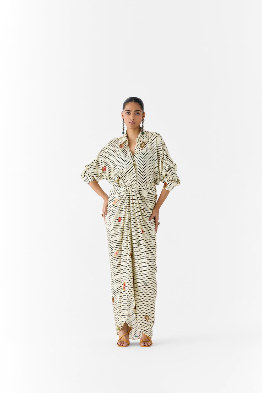 PEARL EMBROIDERED KIMONO AND KNOT SKIRT