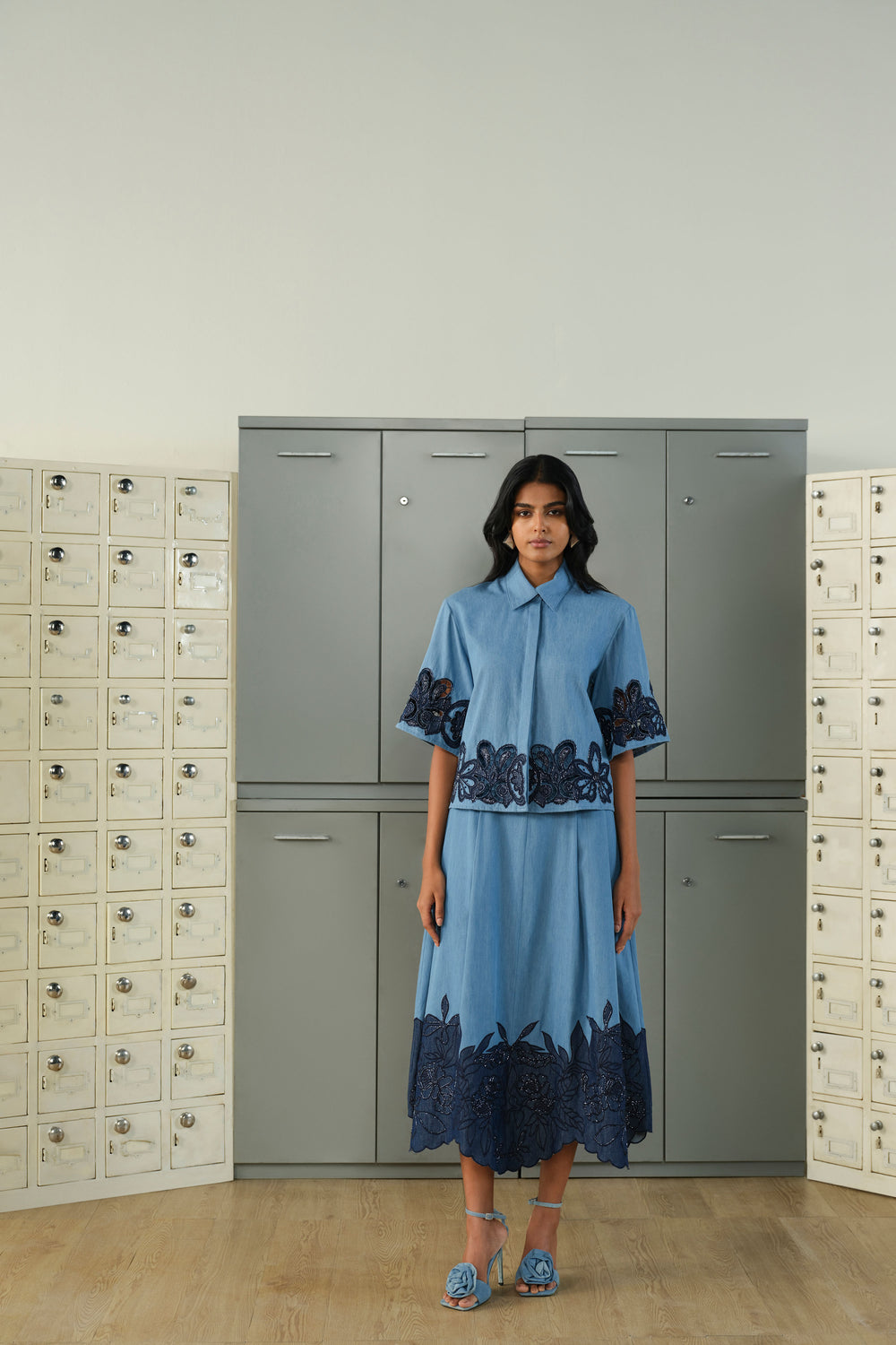 Blue & Silver Shirt with Multitoned Embellishments
