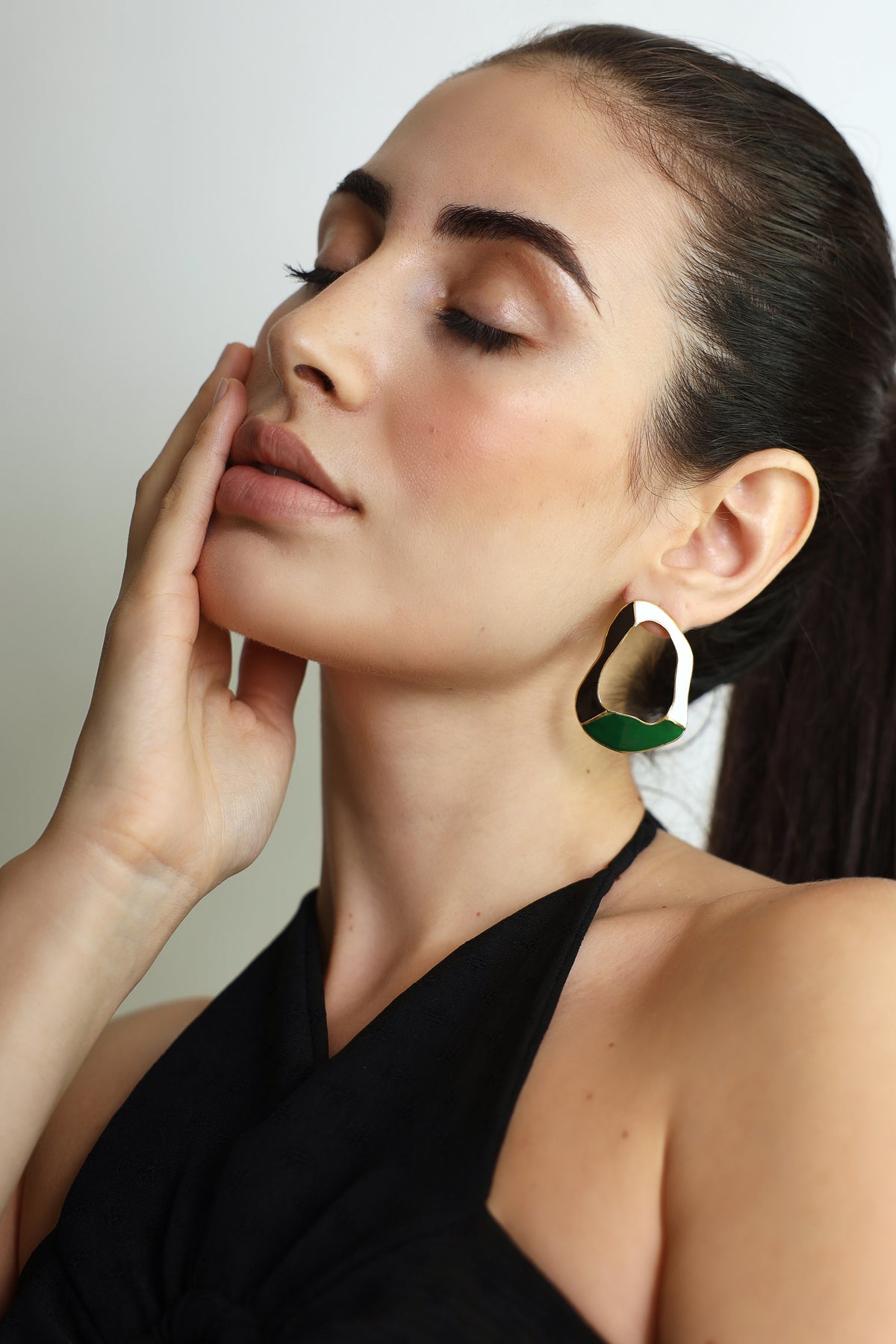 Make a bold impression with these statement hexagonal hoop earrings, where sharp lines meet smooth curves in perfect harmony. Crafted in high-shine gold and edged with a white enamel, these earrings are a modern twist on classic geometry. The angular silhouette offers a confident, contemporary flair, while the rich white border adds a striking contrast that captures the light—and attention. Ideal for both standout day wear and glamorous evenings, these earrings are designed for those who dare to be different.